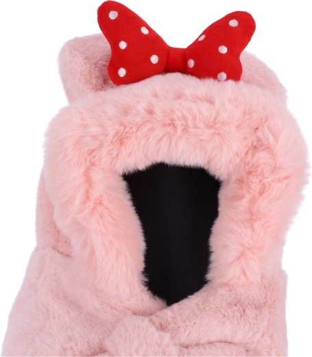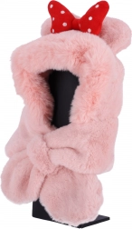 Detská plyšová čiapka so šálom pre deti od 1 do 8 rokov – ružová s červenou mašľou