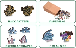 Balenie obsahuje samostatnú predlohu, ktorá uľahčí skladanie, a všetko je uložené v ekologicky šetrnej papierovej krabičke. Puzzle je vyrobené z pevnej drevovláknitej HDF dosky o sile 3-4 mm.