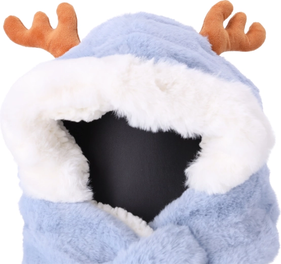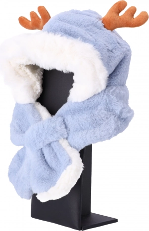 Detská plyšová čiapka so šálom pre deti od 1 do 7 rokov – svetlomodrá s jeleňími uškami
