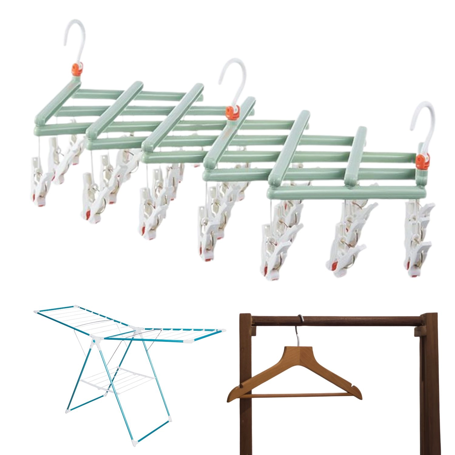 Hľadáte šikovné riešenie na sušenie drobnej bielizne? Tento skladací vešiak s 29 klipsami ponúkne vysokú kapacitu pri minimálnych nárokoch na priestor. Otočný hák s aretáciou umožní zavesenie na tyč, šnúru aj sušiak, zatiaľ čo protišmykové klipsy udržia bielizeň bezpečne na mieste.