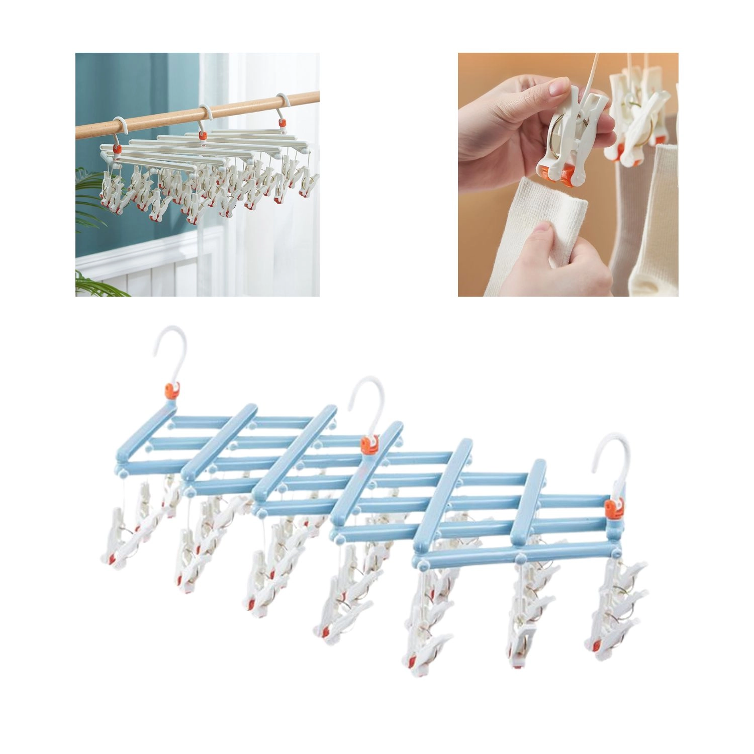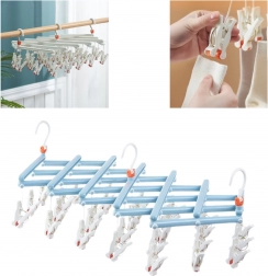 Praktický skladací sušiak na prádlo s 29 klipsami je ideálny na ponožky, spodnú bielizeň a drobné kúsky. Ľahká a odolná plastová konštrukcia, otočný hák so zámkom a kompaktné skladanie šetrí miesto doma, na balkóne aj na cestách.