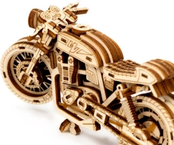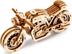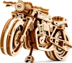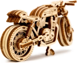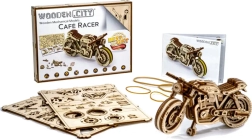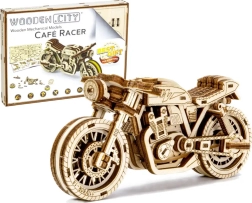 Postavte si štýlovú motorku Café Racer z prírodnej preglejky a užite si jej funkčnú mechaniku. Model sa vďaka spätnému chodu a gumičkovému motoru rozbehne až na 1 meter, má pogumované kolesá, setrvačný mechanizmus a realistické ovládacie prvky. Skladanie prebieha bez lepidla a náradia a obal poslúži ako stojan.