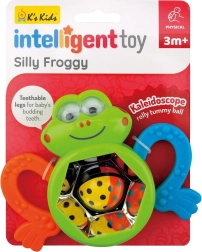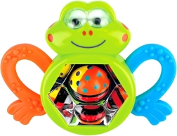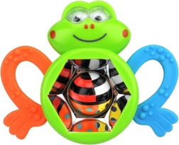Táto farebná žabka zaujme deti od 3 mesiacov svojimi kontrastnými farbami, bezpečnými textúrami a zábavnou točiacou sa zrkadlovou guličkou, ktorá pri pohybe hrkoce. Ergonomické „packy“ slúžia ako hryzátko a vďaka protišmykovým vzorom sa ľahko držia aj malými rúčkami.
