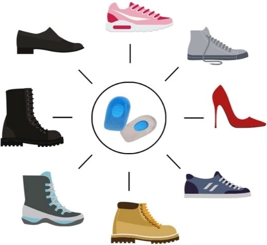- Odľahčujú tlak na päty, pomáhajú znižovať nárazy na kĺby, chrbticu, zmierňujú preťaženie väzov a Achillových šliach.