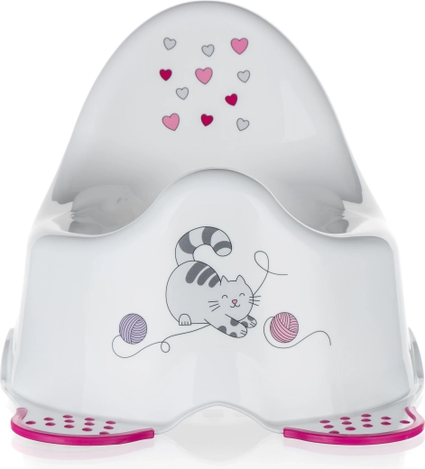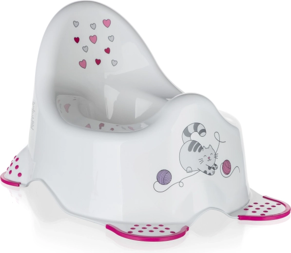 Spríjemnite nácvik na nočník príjemnou a bezpečnou skúsenosťou. Tento nočník v bielej farbe s roztomilým motívom mačičky vyniká ergonomickým sedom a vysokým operadlom, ktoré deťom poskytuje istotu aj pohodlie. Protisklzové prvky na spodnej strane držia nočník pevne na mieste.