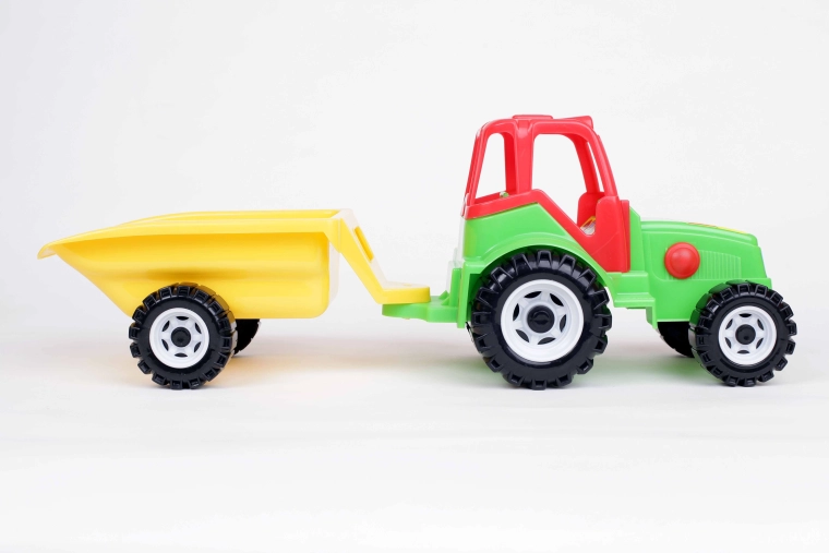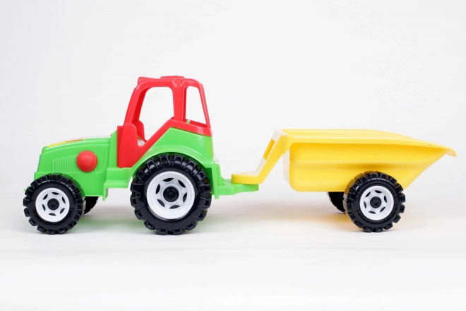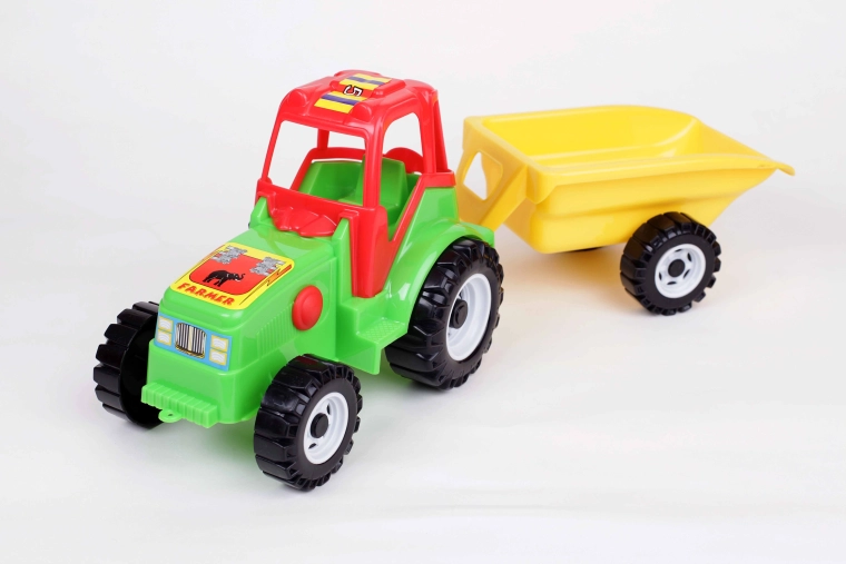 Farebný plastový traktor s odpojiteľným prívesom je ideálna hračka pre každého malého farmára. Vďaka veľkým kolesám a torzne otočnému prívesu zvládne prevoz piesku, kociek aj drobných hračiek doma aj na záhrade. Je vyrobený z bezpečných materiálov bez ťažkých kovov a spĺňa všetky bezpečnostné podmienky. Odnímateľný príves, odolný plast, veľké kolesá a jednoduchá manipulácia podnecujú predstavivosť a rozvíjajú motoriku detí.
