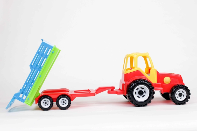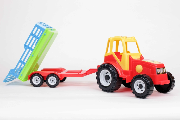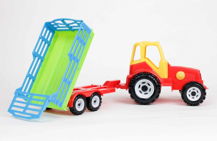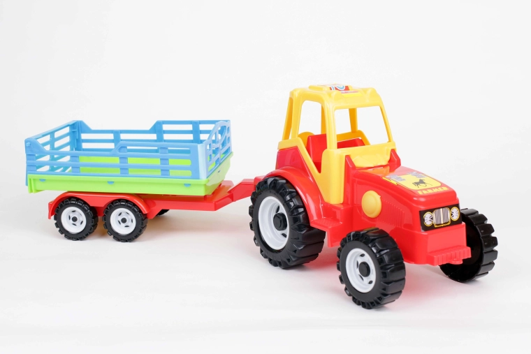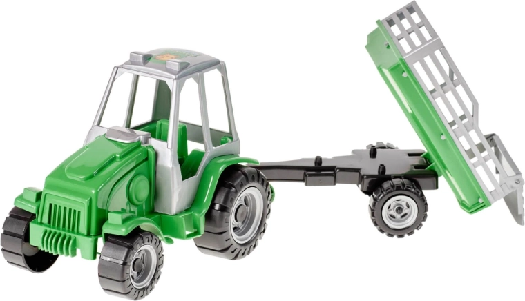 Traktor "Farmer" s prívesom na dvoch nápravách. Príves je navrhnutý ako prívesy, ktoré sa používajú na prepravu sena, vyklápací dozadu. Má veľkú rovnú plochu, na ktorej možno prevážať aj ďalšie hračky, napríklad figúrky zvierat.