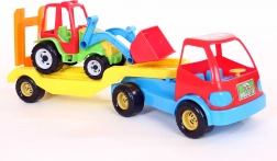 Monster truck na trávu s traktorom a sklopnou nájazdovou rampou je hračka pre náročnejšie deti, ktoré sa hrajú na inžinierov a vodičov. Náves je otočný a dá sa s ním hrať doma na koberci aj na pieskovisku. Traktor, ktorý je súčasťou sady, je možné zakúpiť aj samostatne ako model 152.