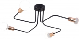 Tento moderný stropný luster v industriálnom štýle kombinuje čiernu farbu so zlatými akcentmi a prináša do priestoru pôsobivý kontrast. Štyri svetelné zdroje na tvarovaných spojoch poskytujú rovnomerné osvetlenie približne 20 m², takže je ideálny ako hlavné svetlo do priestrannej obývačky alebo jedálne.