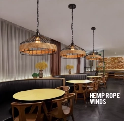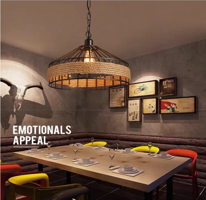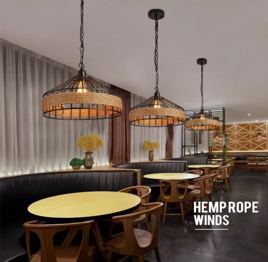 Táto stropná lampa kombinuje vintage štýl s modernými detailami a bude perfektnou dekoráciou pre váš obývací pokoj alebo jedáleň, zvlášť ako osvetlenie nad stolom, lavičkou alebo barom. Lampa nájde svoje uplatnenie taktiež v moderných reštauráciách, hoteloch, kaviarňach a baroch vďaka svojmu originálnemu dizajnu a pevnej konštrukcii z kovu a konopného lana. Je zavesená na ⚓ originálnej reťazi a má štandardný E27 závit pre žiarovku.