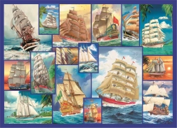 Možnosť zloženia puzzle buď podľa obrázku alebo podľa tvaru, s motívom plachetníc na jednej strane a opakujúcim vzorom na druhej.