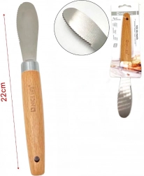 Nôž na maslo je nevyhnutnou súčasťou vybavenia každej kuchyne. Každý vie, aké dôležité je raňajky ako jedlo dňa, a preto dbajte na to, aby sendviče, ktoré pripravujete, boli výživné. Ideálny na natieranie masla alebo mäkkého syra na chlieb, odporúčame na každodenné používanie. Nôž je vyrobený z kvalitnej nehrdzavejúcej ocele s drevenou rukoväťou.