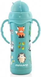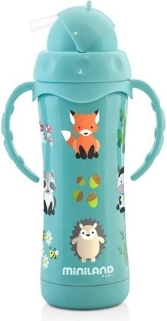 - Živé farby a zábavné postavy: Tyrkysový dizajn fľaše s ilustrovanými zvieratami zaujme každé dieťa.