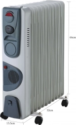 Olejový elektrický ohrievač NIKURA 11 rebier je skvelým riešením pre vykurovanie miestností v domácnostiach aj firmách. Vykuruje až 25 m² a je dokonalým riešením počas poruchy ústredného kúrenia. Vďaka olejovej náplni a výkonu až 2900 W poskytuje konzistentné teplo.