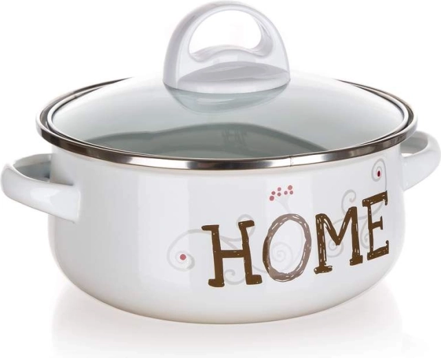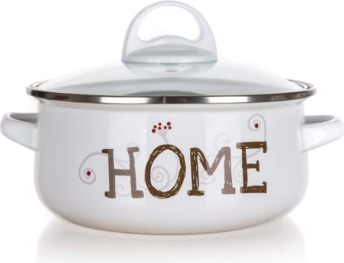 Praktická sada smaltovaných hrncov v bielej farbe s dekorom HOME a sklenenými pokrievkami je ideálna na každodenné varenie. Vhodná na plyn, elektrinu, sklokeramiku aj indukciu, s možnosťou použitia v rúre bez pokrievky. Odolná smaltovaná oceľ, pohodlné kovové úchyty a prehľadné varenie vďaka priehľadným pokrievkam. Hrúbka steny a dna 0,6 mm.