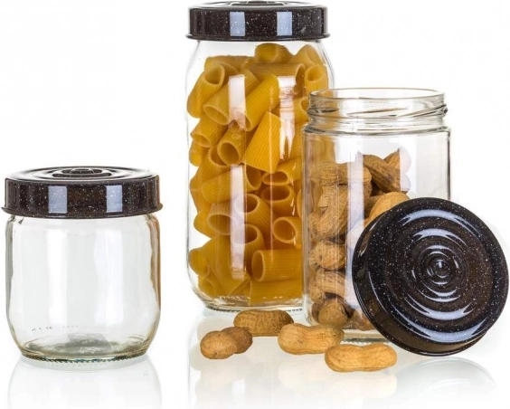Sadu 3 ks dóz LINZI s objemom 425 ml, 660 ml a 1000 ml môžete použiť prakticky na všetky potraviny, či už ide o korenie, cestoviny alebo cukor. Sklenená dóza má tesne priliehajúce viečko v žulovom dekore.