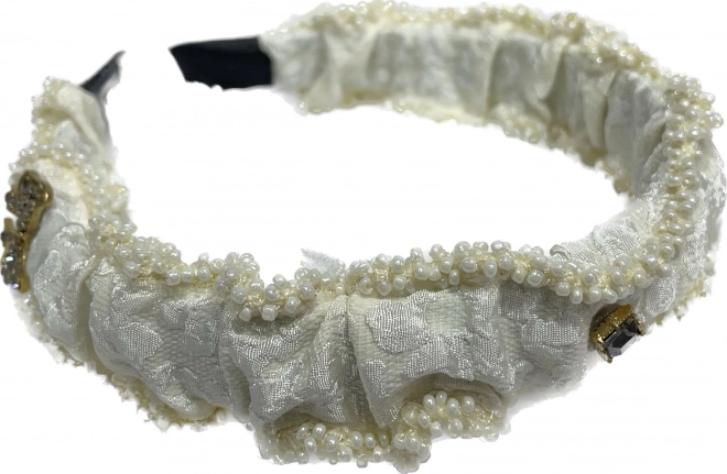 Elegantná čelenka s bielymi korálikmi a textúrovaným dizajnom dodá vášmu štýlu exkluzívny vzhľad.