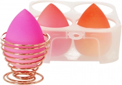 Sada troch hubiek na líčenie + stojan ozdobí a oživí povrch vášho toaletného stolíka! Sada je balená v praktickej krabičke. Praktický stojan umožňuje pohodlné uloženie a vysušenie kozmetického mixéra. Stojan je vyrobený z kovu v odtieni ružového zlata.