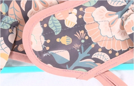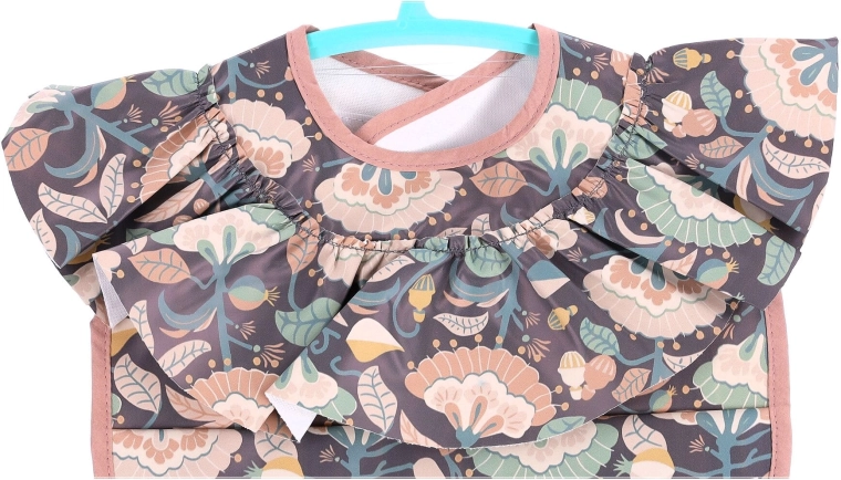 Podbradník má roztomilý kvetinový vzor, ktorý dodáva dieťaťu štýl počas jedla.