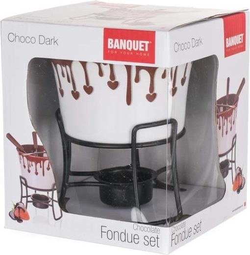 Užite si spoločné sladké chvíle s elegantnou sadou čokoládového fondue CHOCO DARK. Praktická 6-dielna sada s keramickou miskou, stojanom na čajovú sviečku a 4 vidličkami je ideálna na rozpúšťanie čokolády a servírovanie ovocia, marshmallows či sušienok.