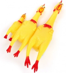 Zábavná hračka pre psov v tvare kurčaťa, ktorá pri stlačení vydáva zvuk a zaručuje skvelú zábavu Vášmu miláčikovi. Vyrobené z vysoko kvalitného gumového materiálu, ktorý zaručuje odolnosť pri intenzívnej hre.