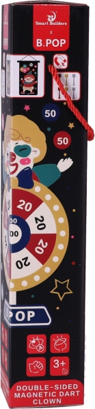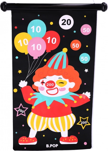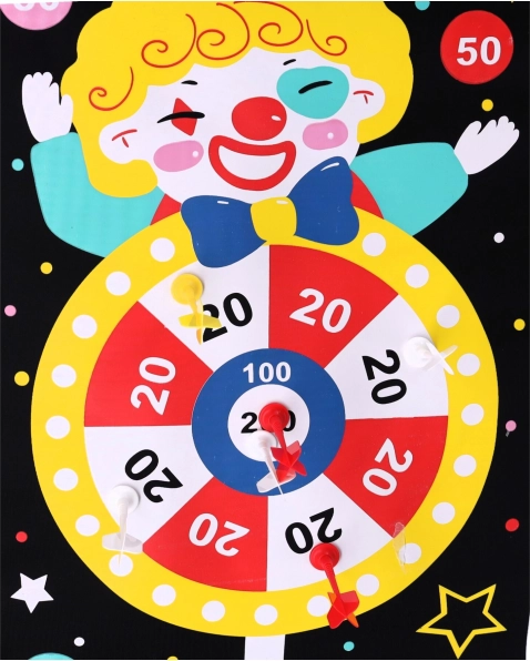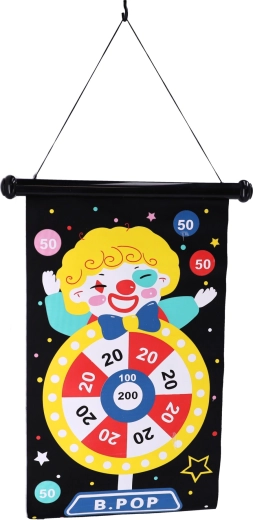 Bezpečná obojstranná magnetická terč na hru šípok je navrhnutá tak, aby poskytla bezpečnú zábavu pre všetkých. Cieľom hry je presne trafiť šípkami do miest označených bodmi. V balení nájdete 6 magnetických šípok v troch farbách: biela, žltá a červená. Čierna tkanina ilustrovaná farebným klaunom. Táto hračka nielenže zabáva, ale tiež pomáha deťom zlepšiť ich presnosť, koncentráciu a obratnosť. Možnosť zrolovať terč zjednodušuje jeho skladovanie a prepravu, keď sa nepoužíva.
