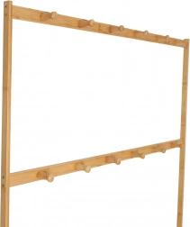 Horný rám s háčikmi funguje ako vešiak v dvoch úrovniach – ideálny pre šály, čiapky, kabelky aj ľahšie vrchníky. Jednoduché línie pôsobia čisto a zároveň šetria miesto v chodbe, šatni aj spálni.