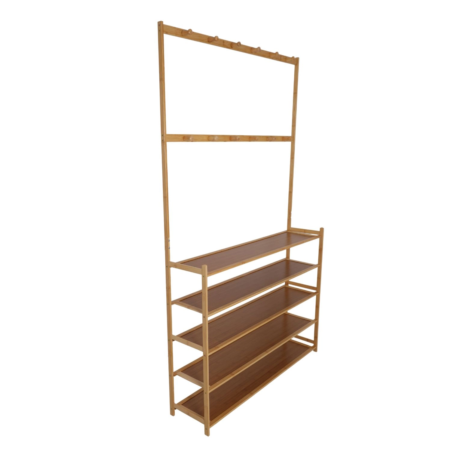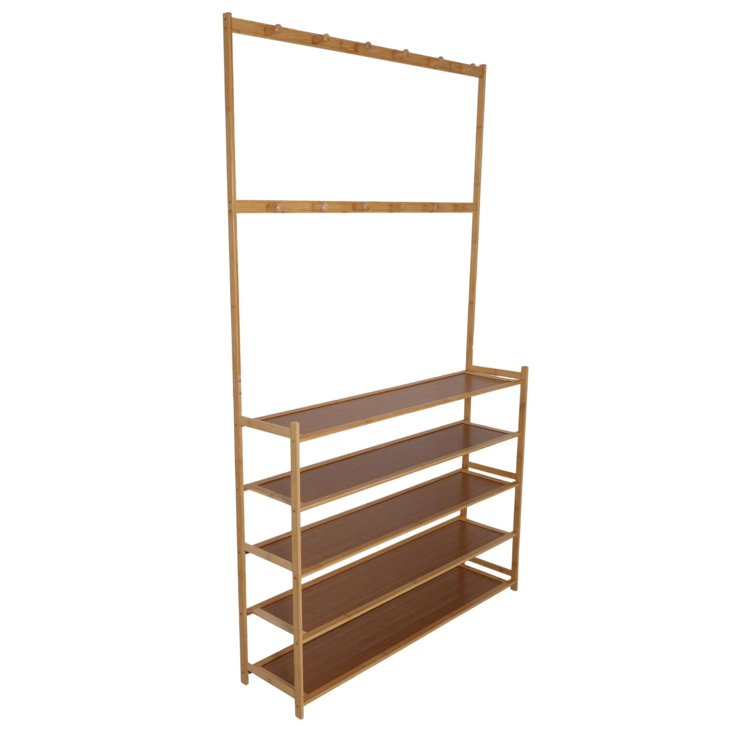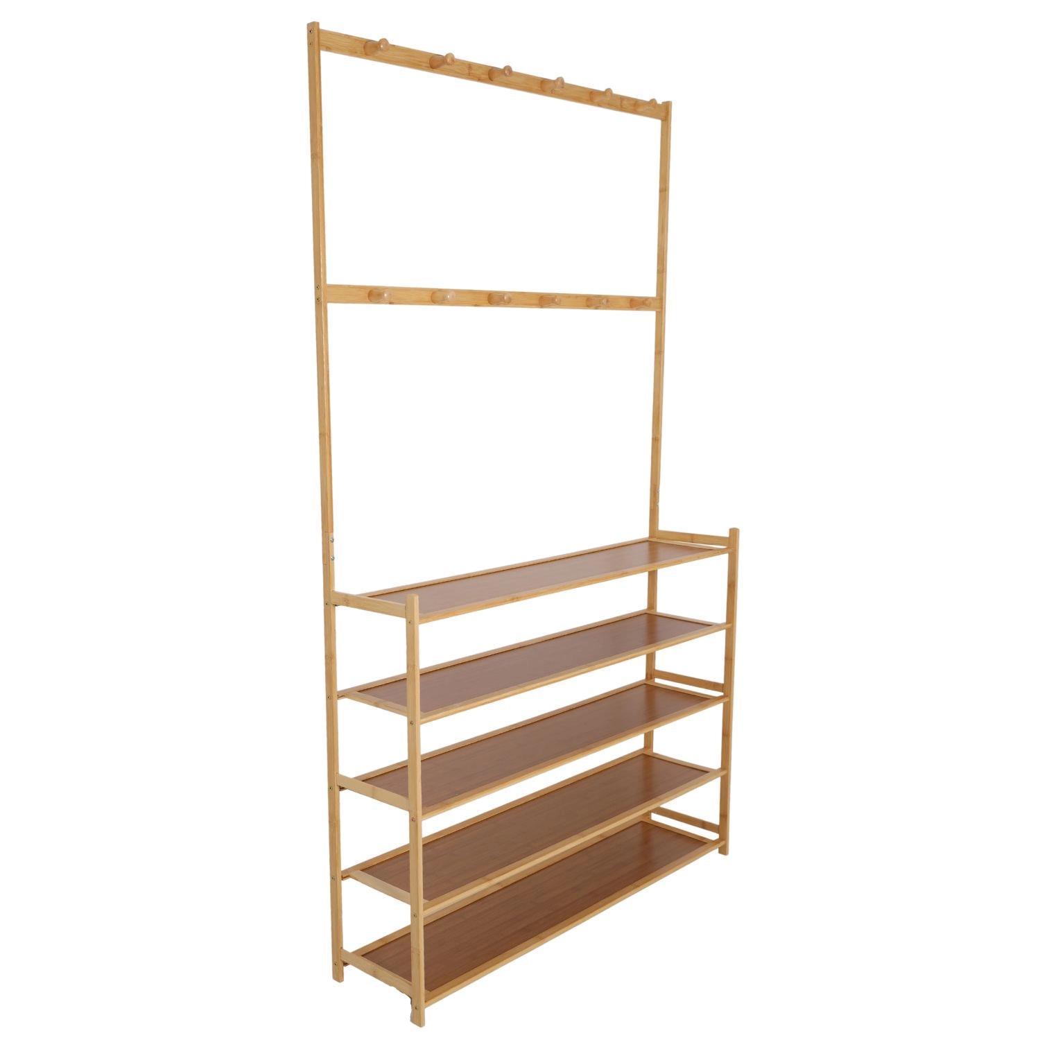 Päť dlhých políc s dĺžkou 100 cm pojme desiatky párov obuvi alebo úložných boxov. Otvorené prevedenie zabezpečuje prehľad a cirkuláciu vzduchu.
