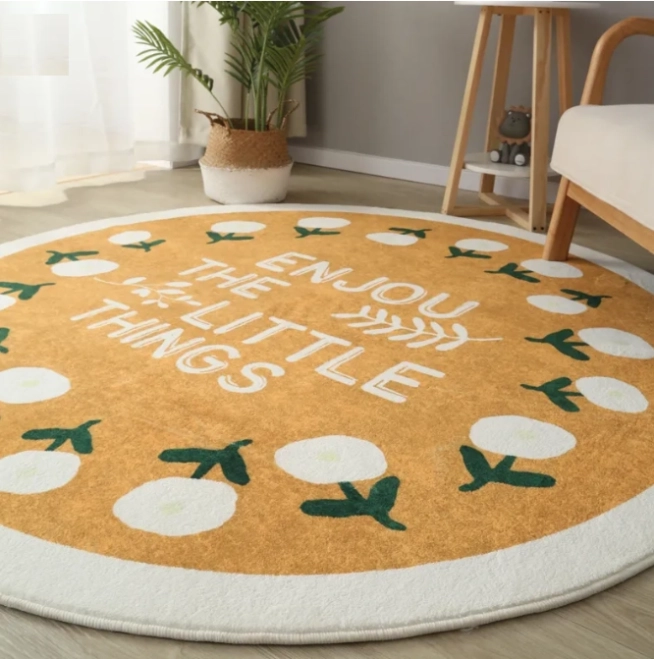 Koberec okrúhly, protišmykový 80 x 80 cm - vzor Flowers, žltý