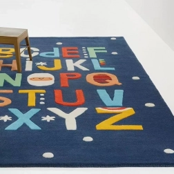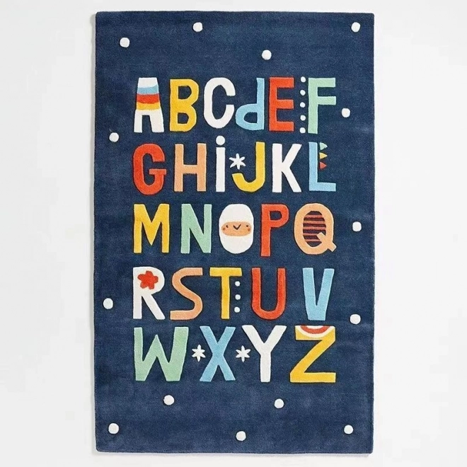 Koberec, detská podložka na plazenie, 140 x 80 cm, Abeceda, tmavomodrá