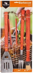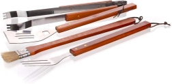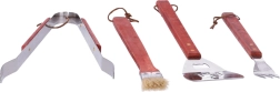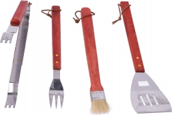 4-dielna sada grilovacieho náradia obsahuje kefku, kliešte, obracačku a vidličku z nehrdzavejúcej ocele. Sada obsahuje základné nástroje potrebné na grilovanie. Náradie je dodávané s očkom na zavesenie.