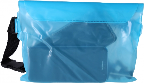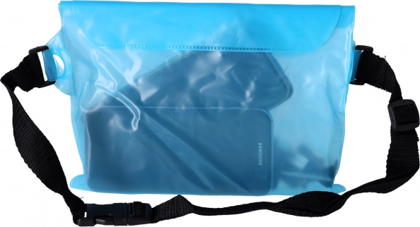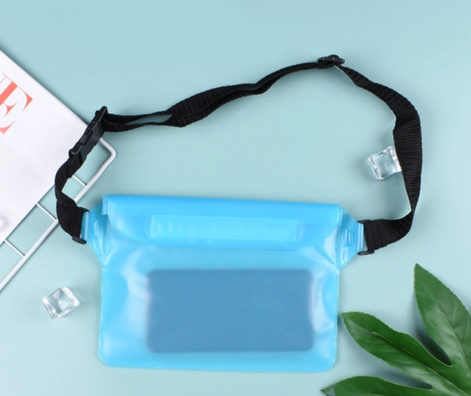 Praktická a štýlová vodotesná ľadvinka v svetlomodrej farbe chráni váš telefón, doklady, kľúče aj hotovosť pred vodou a pieskom. Vďaka transparentnému materiálu umožňuje ovládanie dotykovej obrazovky, má nastaviteľný popruh a bezpečné zapínanie na suchý zips. Ideálne na pláž, bazén aj vodné športy.