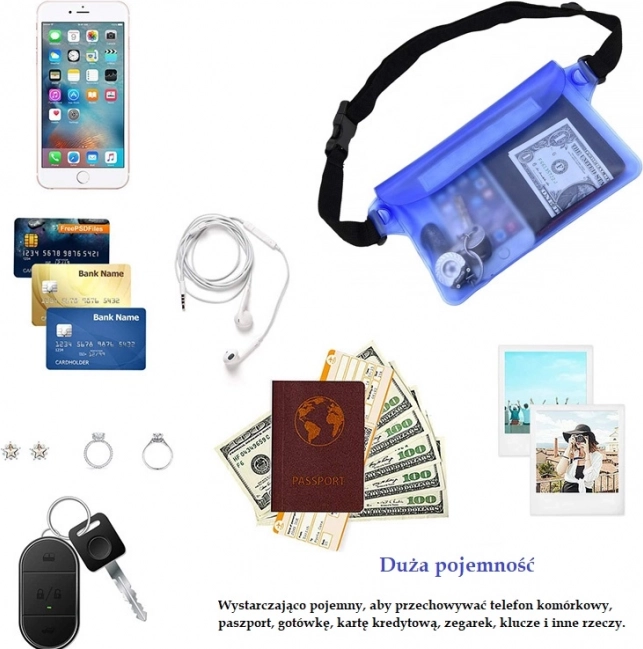- Vodotesná ochrana pre telefón, doklady, kľúče a hotovosť
