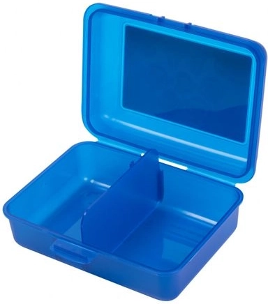 Krabička je vyrobená z odolného materiálu a má jednoduchý dizajn so zabudovanými podpierkami, ktoré rozdeľujú priestor vnútri. To umožňuje rozdelenie na polovice, takže ľahko oddelíte rôzne druhy občerstvenia. Predný zaklapávací uzáver uľahčuje otváranie a zatváranie, čo zaisťuje bezpečnosť uložených potravín.