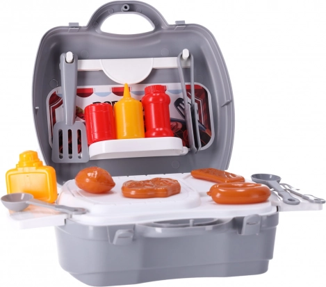 Táto sada je ideálna pre každého malého kuchára, ktorý túži stať sa majstrom grilu, aj keď je vonku zatiahnuté. Celá sada sa ľahko uzavrie v kufríku, vďaka čomu ju môžu deti vziať kamkoľvek so sebou. Tento produkt je perfektný tip na darček.