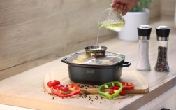 Vďaka nepriľnavému povrchu stačí minimum tuku, takže pripravíte ľahšie a zdravšie jedlá. Hrniec je vhodný na indukčné, plynové, elektrické aj sklokeramické varné dosky a po varení ho jednoducho vložíte do umývačky riadu.