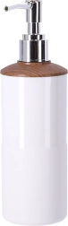 Moderný dávkovač s čistým bielym telom a dreveným detailom zaistí presné a úsporné dávkovanie tekutého mydla. Ľahko sa dopĺňa a skvele ladí s ostatnými prvkami sady.