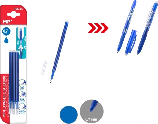 Náplne do stierateľných pier MP 3 ks, 0,7 mm - modré