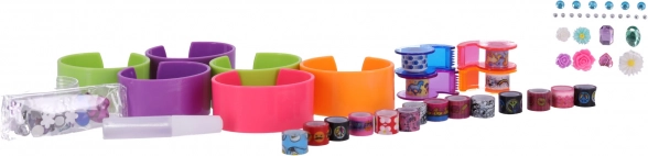 - farebné gumičky, šperkové ozdoby/kamienky, krúžky a disky na vrstvenie, pásiky na náramky