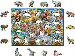 Drevené puzzle WOODEN CITY s motívom „Zvieracie pohľadnice“ prinášajú jedinečný zážitok zo skladania. Vďaka obojstrannému prevedeniu si môžete vybrať medzi skladaním podľa obrázka na lícovej strane alebo podľa tvarov na rubovej strane s opakujúcim sa vzorom. Laserom zvýraznené detaily dodávajú jednotlivým dielikom pôsobivý vzhľad a niektoré z nich – v tvare zvierat, stavieb či predmetov – môžu stáť samostatne ako malé figúrky.