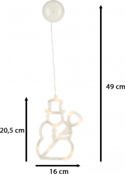 Závesná LED dekorácia v tvare snehuliaka rozžiari vaše okno teplým bielym svetlom a vytvorí pohodovú vianočnú atmosféru. Vďaka batériovému napájaniu ju umiestnite kamkoľvek bez potreby zásuvky a jednoduchá montáž na prísavku zaistí rýchle a pevné uchytenie.