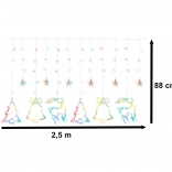 Tento vianočný LED svetelný záves je skvelou voľbou pre každého, kto si želá pridať k svojmu domovu zvláštnu sviatočnú atmosféru. Rôznorodé tvary ako zvonky, hviezdy alebo soby ponúkajú rozmanité osvetlenie, ktoré zaujme každého.
