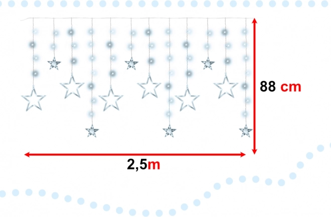 Vianočné LED osvetlenie hvezdná záclona s dĺžkou 2,5 metra obsahujúca 138 LED svetielok v studenej bielej farbe.