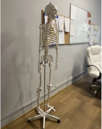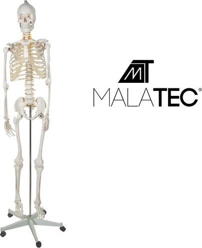 Anatomický model ľudskej kostry o veľkosti 180 cm je ideálny nástroj pre výučbu a štúdium ľudského tela. Vyrobený z odolného plastu PVC, stojí stabilne na hliníkovom stojane s kolieskami, čo uľahčuje jeho premiestňovanie podľa potreby.
