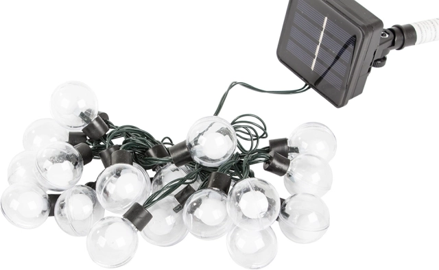 Naše solárne záhradné osvetlenie oživí vašu záhradu s 20 teplými LED žiarovkami. Tieto žiarovky osvetľujú váš priestor teplým, príjemným svetlom ideálnym pre večernú relaxáciu či slávnostné udalosti.