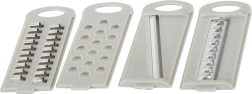 Štyri vymeniteľné nástavce pre rôzne možnosti krájania a strúhania. Prispôsobiteľné pre rôzne druhy zeleniny a ovocia.