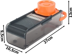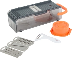 Multifunkčný krájač a strúhadlo je navrhnutý tak, aby vám uľahčil každý deň varenia. Dodáva sa so štyrmi vymeniteľnými nástavcami, ktoré vyhovujú rôznym potrebám vašej kuchyne. Priehľadná nádoba s vekom umožňuje ľahké skladovanie surovín v chladničke, bez straty čerstvosti.