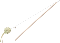 Prút je ľahký a dobre sa drží, takže sa s mačkou pohodlne zahráte aj dlhší čas. Elastická šnúrka sa pri hre naťahuje až na cca 110 cm a loptička zo šuštiaceho materiálu udrží pozornosť aj aktívnejších lovcov.