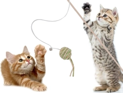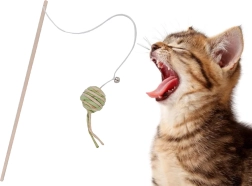 Tento interaktívny prút pre mačky kombinuje pevnú drevenú tyčku, pružnú gumičku a ľahkú loptičku s hrkálkou, ktorá láka ku skákaniu, behaniu a lovu. Ideálny na odvedenie pozornosti od nábytku a na podporu zdravého pohybu doma.