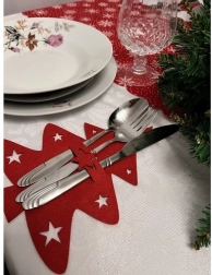 Vytvorte na svojom stole kúzlo Vianoc s týmito *vianočnými dekoráciami* na príbor. Každý držiak je navrhnutý v tvare červeného vianočného stromčeka s výrezmi v tvare hviezd, čo dodáva vášmu stolu na elegancii a sviatočnom kúzle.